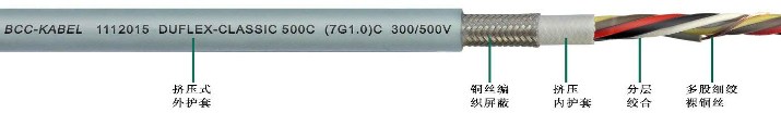 加強型耐油和冷卻液PUR護套彩色芯線屏蔽柔性控制電纜(內護型)
