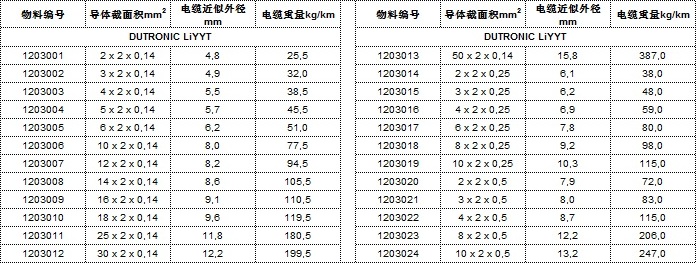 - DUTRONIC LiYYT技術(shù)參數(shù)