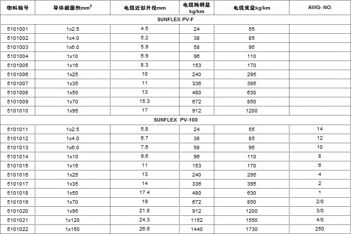 - SUNFLEX PV1-F/PV1-100技術(shù)參數(shù)