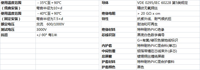 抗紫外線單芯和多芯耐熱(屏蔽)抗扭電纜